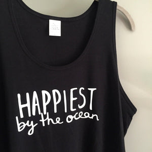 Happiest by the ocean - Bamboo + Organic Cotton Tank Top - BLACK